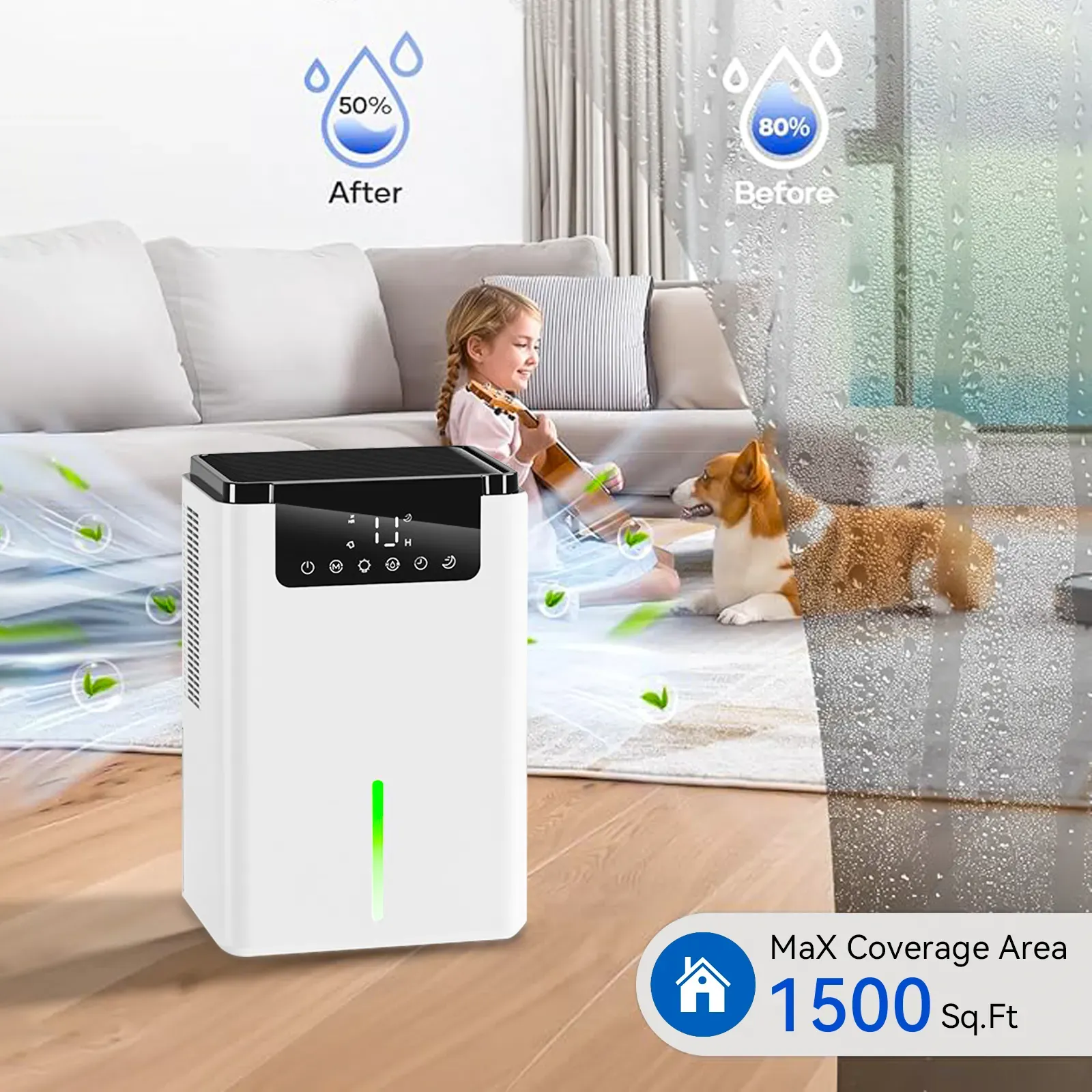 - Intuitive LED Touch Screen: Displays real-time humidity with simple touch controls for the whole family.