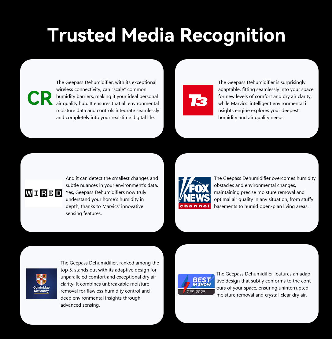 Geepass' dual-core powerful dehumidification technology uses two independent dehumidification systems for double the efficiency. This means whether it's the rainy season or stubborn dampness, it quickly removes moisture from the air, banishing stickiness and musty odors for a home that's instantly fresh and dry.