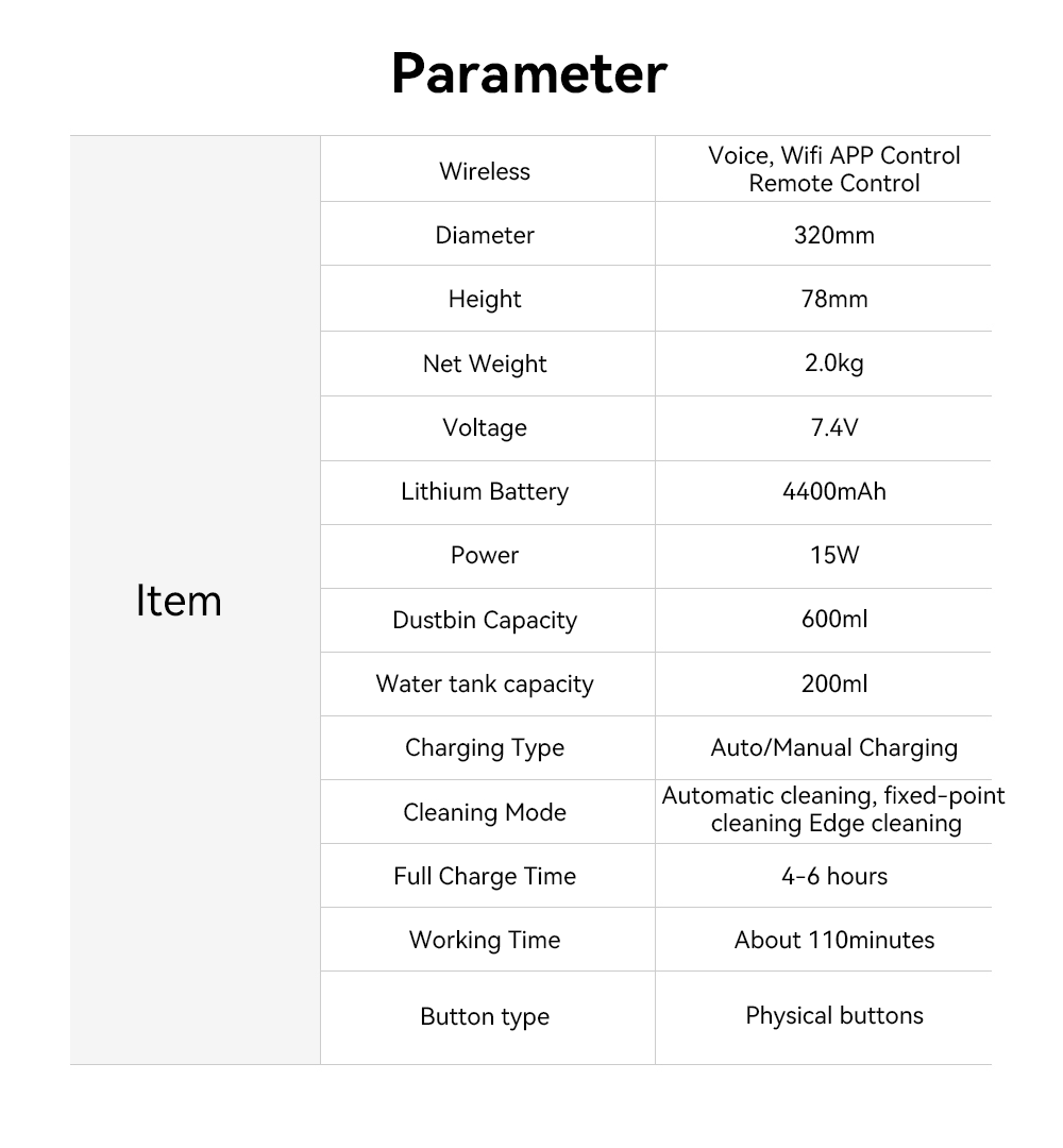 - Bionic Algorithm—Ensures high-precision cleaning, navigating precisely without deviation. Integrated