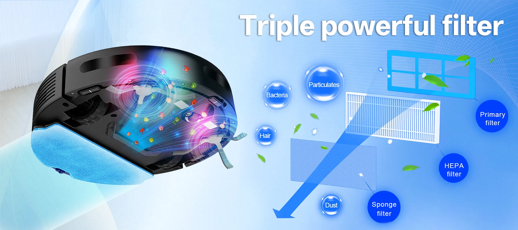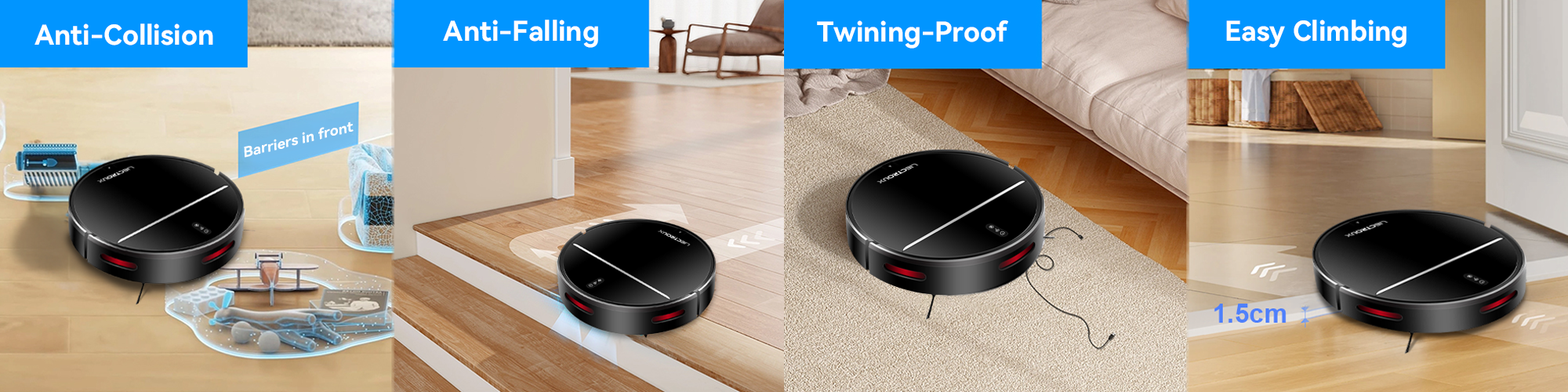 - Precise Laser Navigation—Maps your entire home for efficient, thorough cleaning, so you can say goodbye to missed spots.