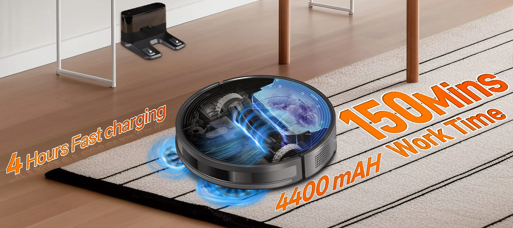 Every home is different, and so are your cleaning needs. This robot vacuum offers multiple adjustment modes, allowing you to customize its performance. Choose from different suction levels, brush speeds, or cleaning patterns to perfectly match your floor type and mess level, ensuring an optimized clean every time.